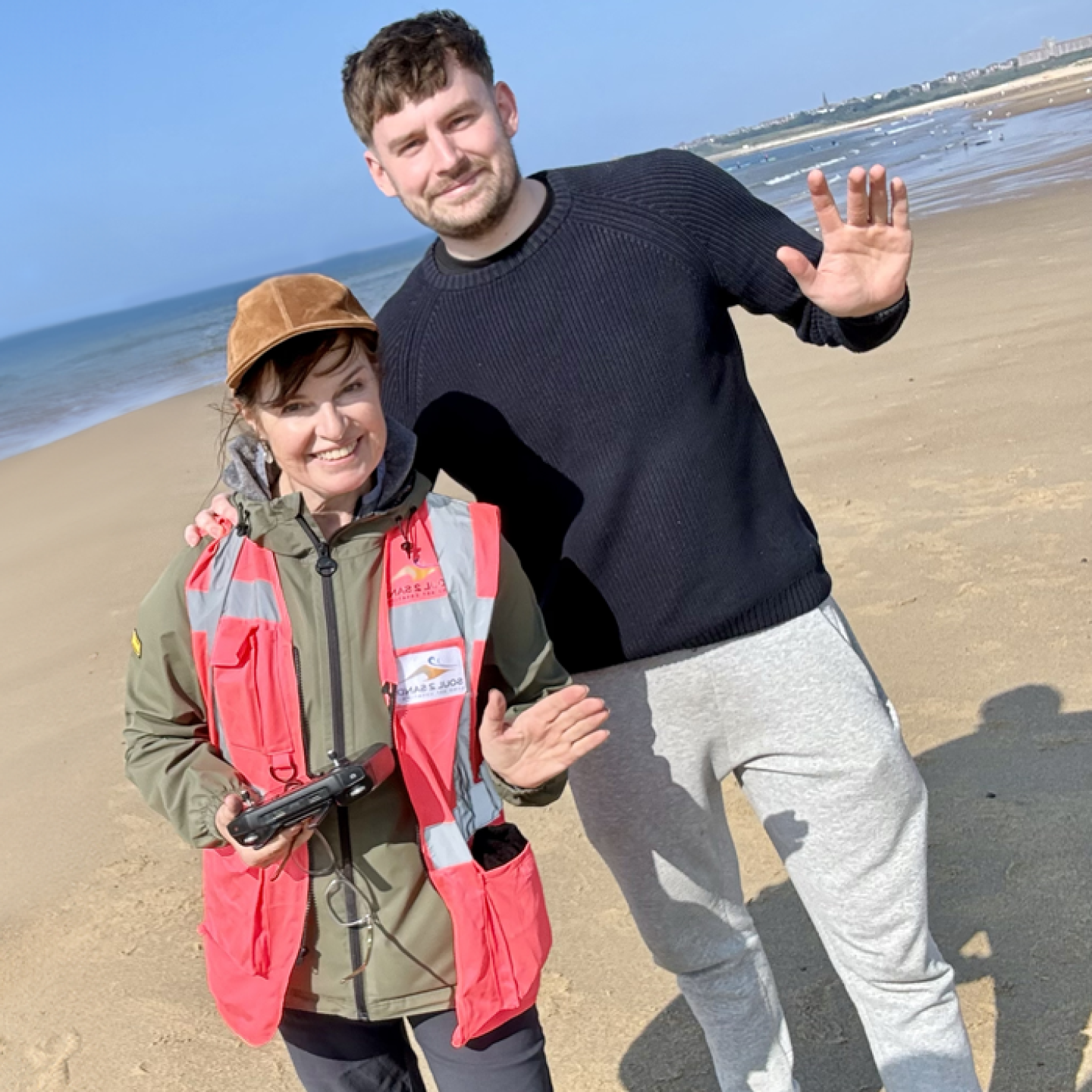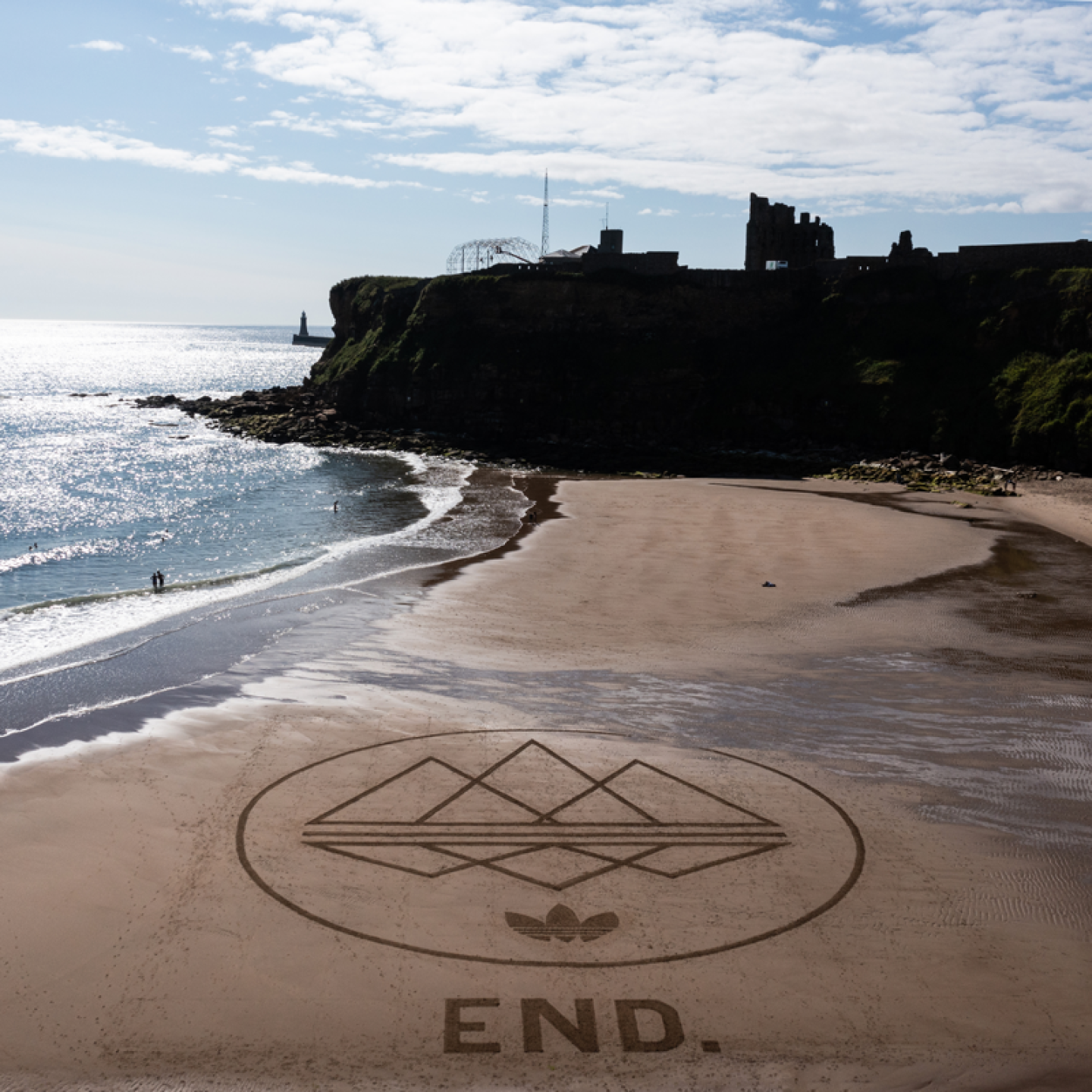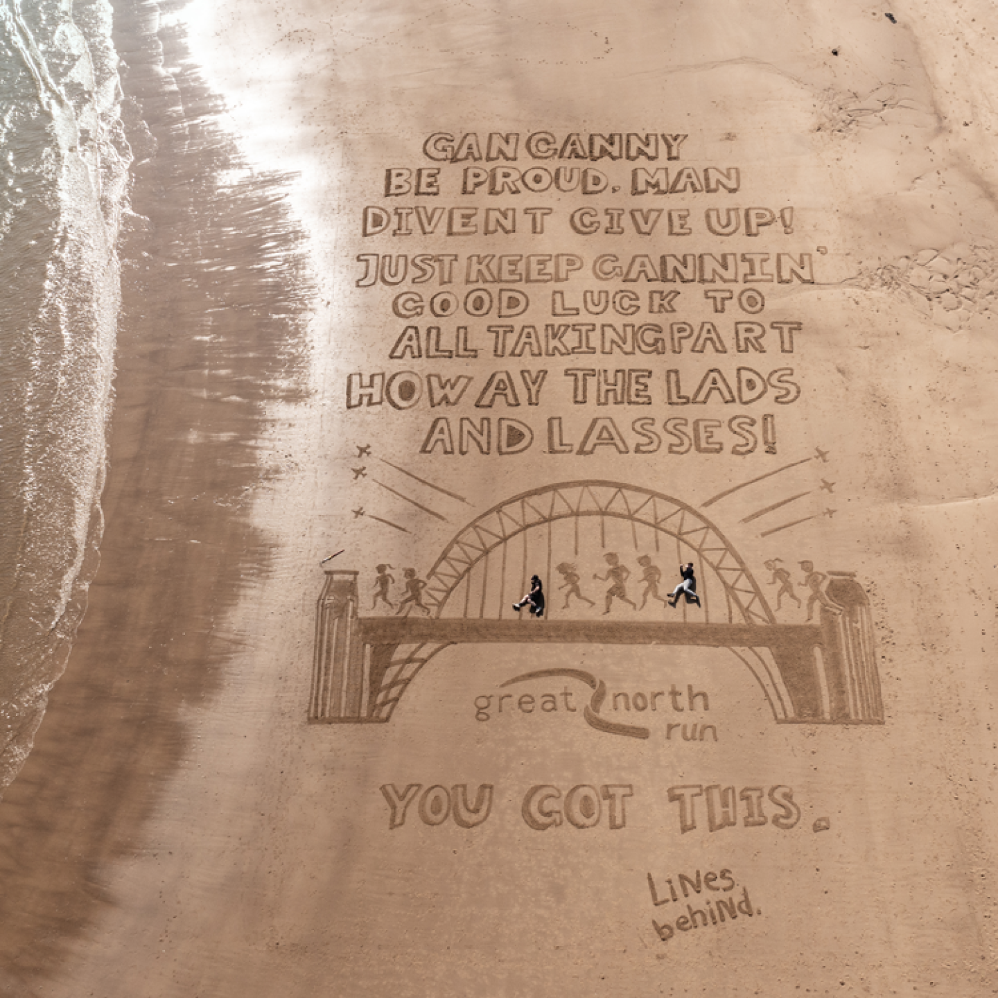 itself. We collaborated with iconic North East artist and designer, James Dixon of Lines Behind to create an encouraging local dialect message on the beach at the end of the run.
