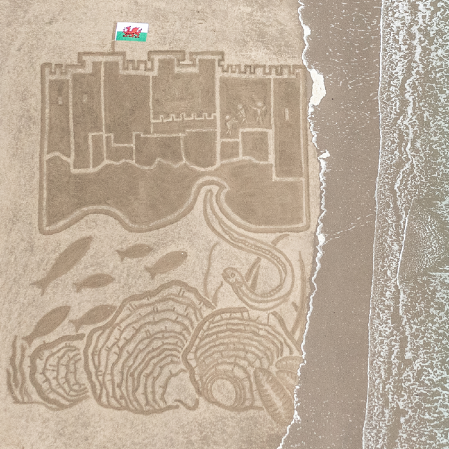 The Wales Wild Oyster Project marked its annual Oyster Fest with a lively community sand art design,