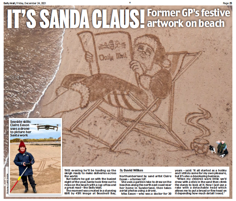 The Daily Mail commissioned a Christmas drawing, allowing me to decide on the design. A relaxed sand Santa came