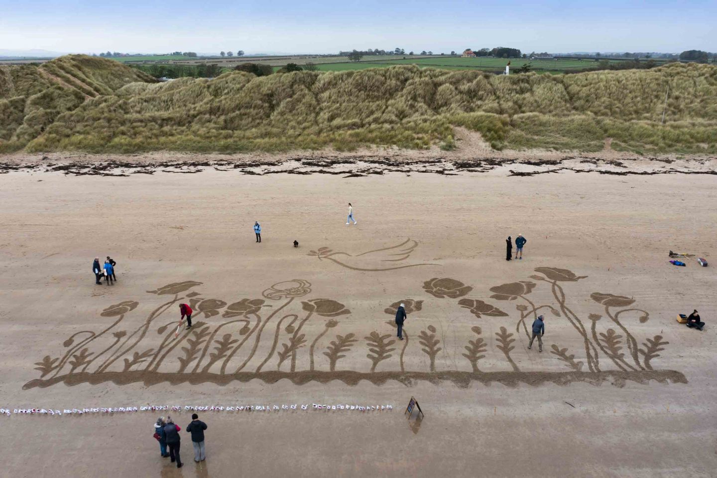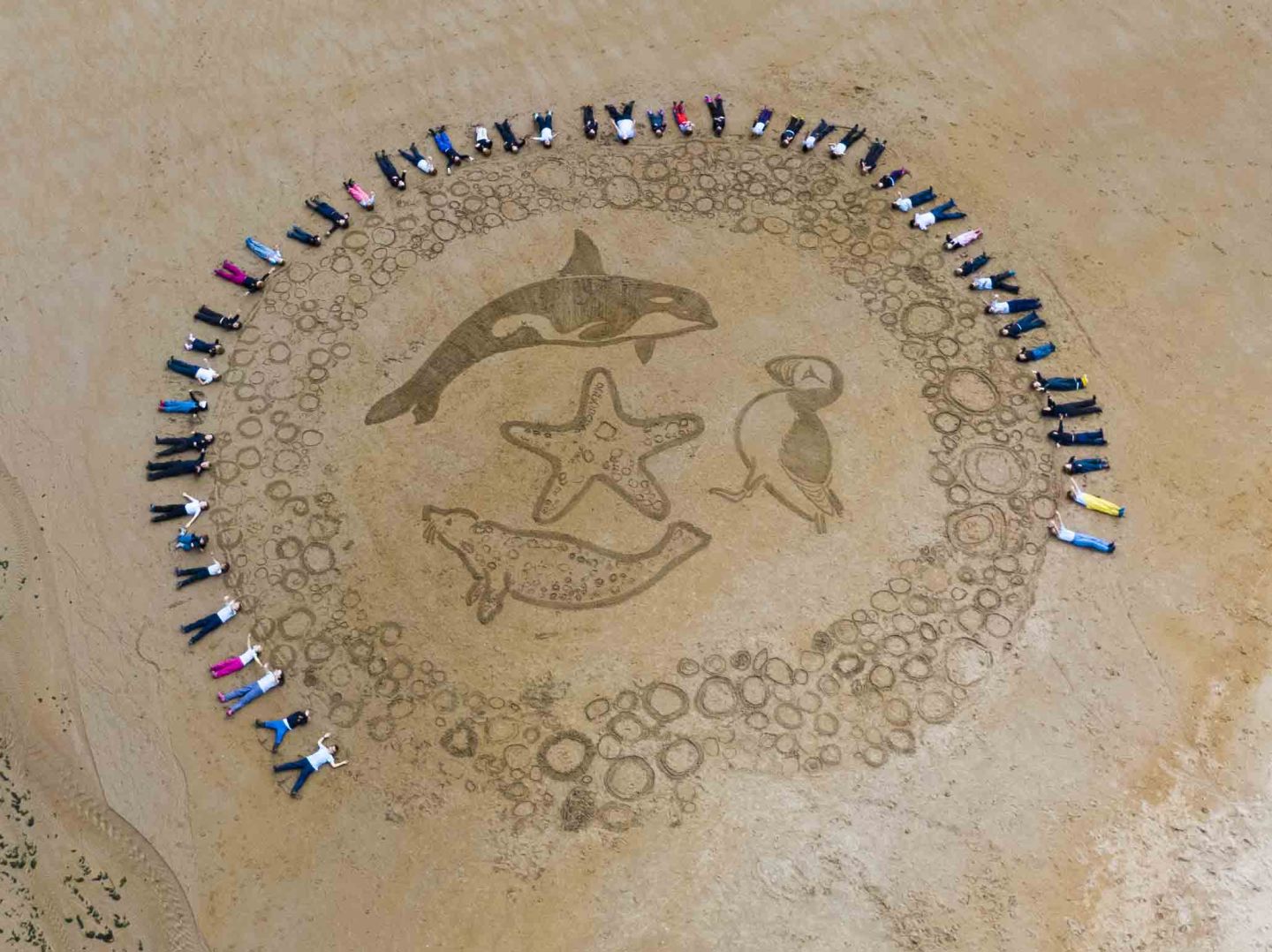 The Wales Wild Oyster Project marked its annual Oyster Fest with a lively community sand art design,