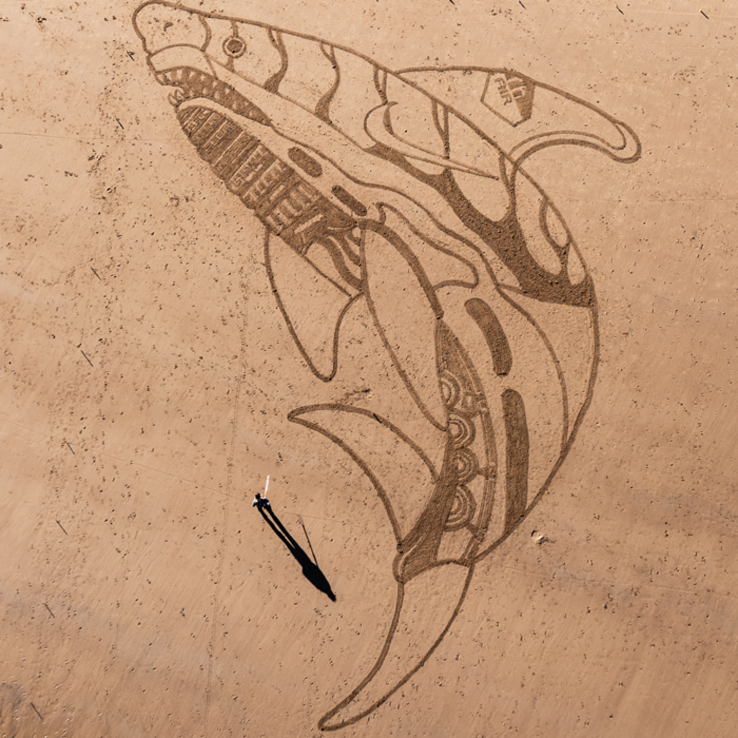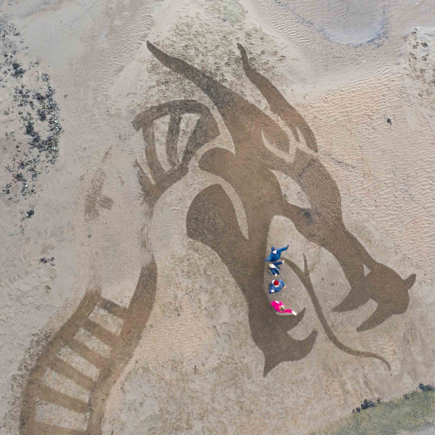 Jormungandr, was drawn with a group of volunteers, as if snaking under the causeway to warn visitors of the dangers of the incoming tides. He was published in the Telegraph. Click here to view video...
