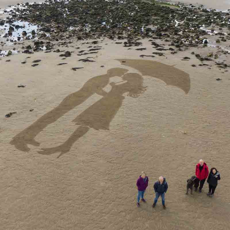 morning of the election results for their broadcast. This involved a quick preparation turnaround and a trip to Cleethorpes bathed in beautiful sunshine. Tide, weather and beach surface all lined up to allow the design to be made at short notice. A very exciting, surprise project! Click here to watch the Sky News coverage.